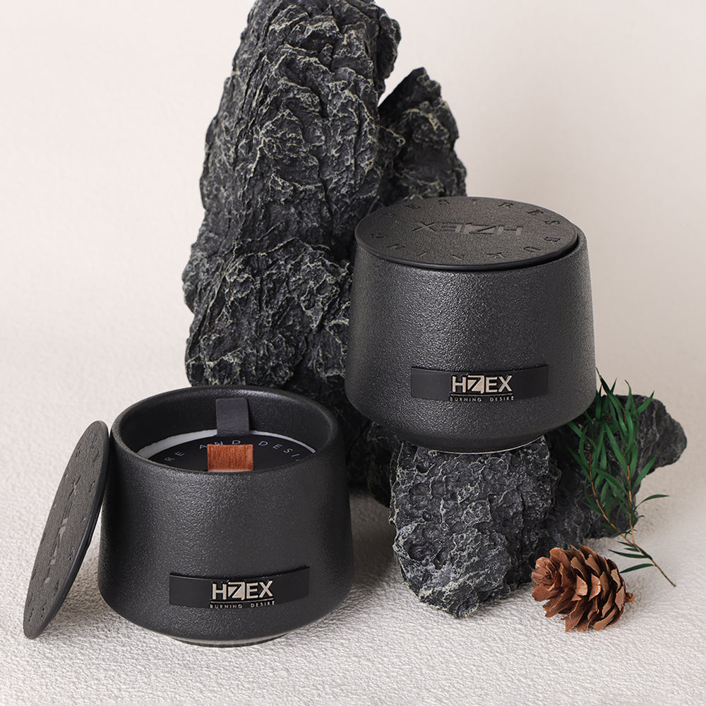 HZEX 150g Scented Candle, Black Ceramic Wooden Wick Premium Scented Candles For Men Home Decor - Fire And Desire