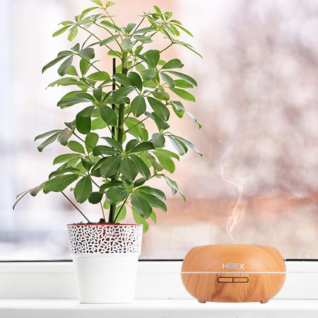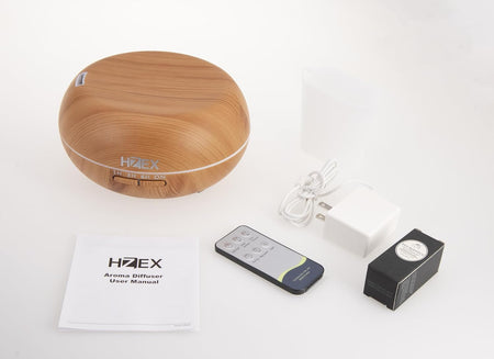 HZEX Aromatherapy Diffuser, Essential Oil Humidifier With Remote, 500ml Water Tank, Wood Grain Shallow For Home Office